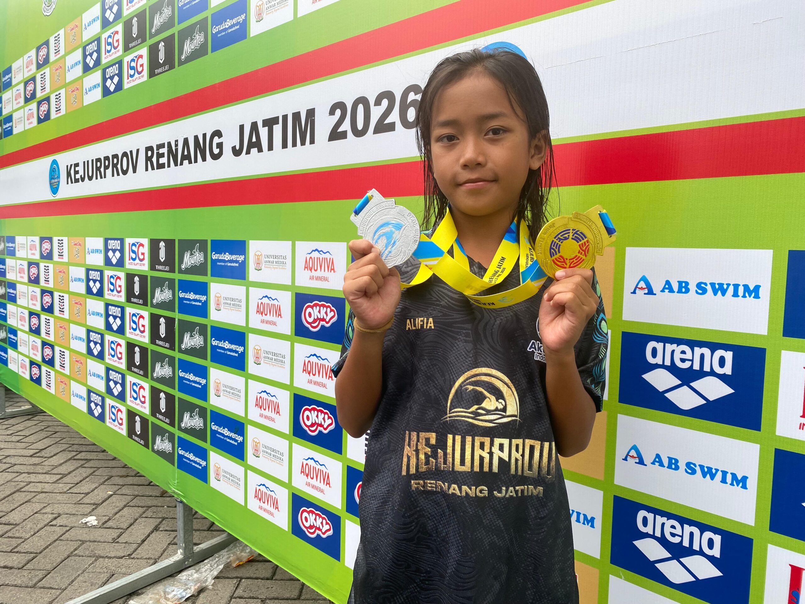 Bertanding di Kolam Renang Delta Sidoarjo, Minggu (12/4), Aliffia tampil impresif di Kelompok Umur (KU) IV putri. Medali emas diraihnya dari nomor 100 meter gaya kupu-kupu dengan catatan waktu 1 menit 19,48 detik.