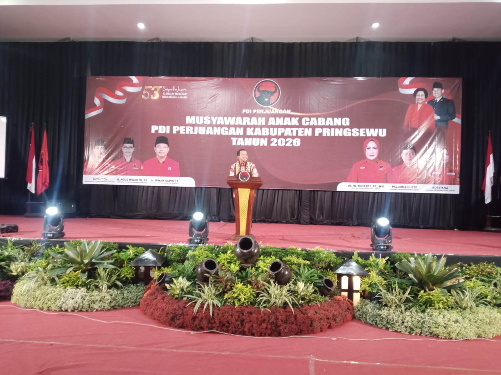Hadir dalam acara tersebut Petinggi PDI-Perjuangan Provinsi Lampung Ketua DPD PDI-Perjuangan Provinsi Lampung periode 2025 – 2030 Dr. Hj. Winarti, S.E., M.H., Anggota DPR RI Fraksi PDI Perjuangan Drs. H. Mukhlis Basri, M.Si, sekretaris DPD Partai PDI-Perjuangan Provinsi Lampung Palgunadi,Bupati Pringsewu H.Riyanto Pamungkas,Para Pengurus DPD Partai PDI-Perjuangan Provinsi Lampung,Wakil Bupati Pringsewu Hj.Umi Laila, Ketua DPRD Kabupaten Pringsewu Suherman,SE., Anggota DPR Provinsi Lampung Andy Roby, SH., bintang tamu artis ibukota Andika Babang Tanvan,Para Perwakilan Partai Politik se-kabupaten Pringsewu, KPU., Para Ketua DPC Partai PDI-Perjuangan Se-provinsi Lampung, Para Pengurus PAC dan kader Partai PDI-Perjuangan se-kabupaten Pringsewu, Perwakilan Kapolres Pringsewu, Perwakilan Kodim 0424 Tanggamus.