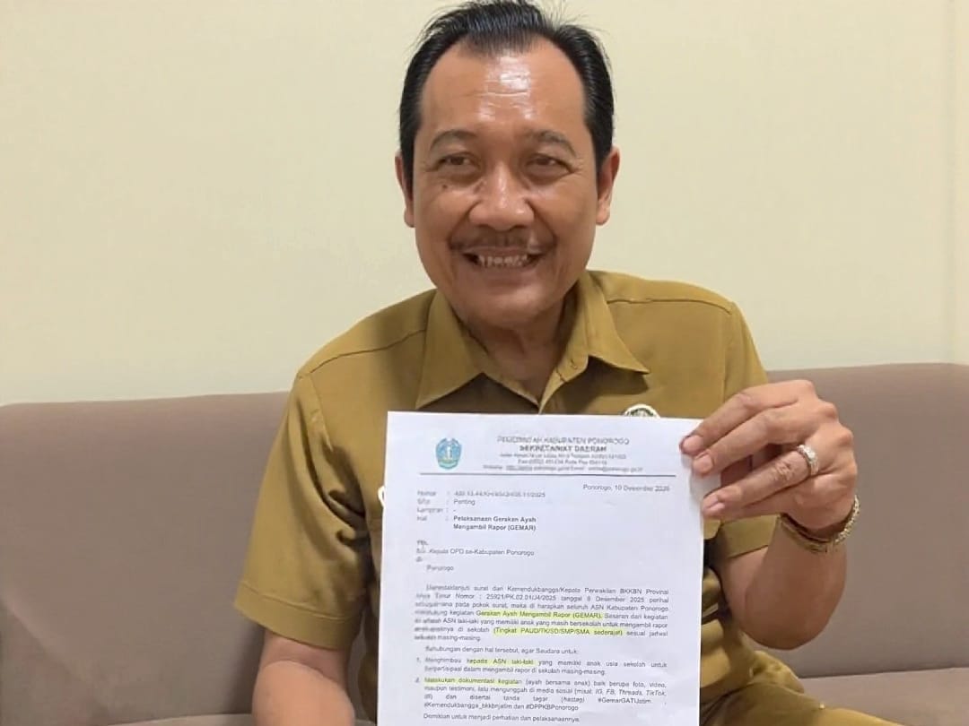 Beritatrends,Ponorogo – Aparatur Sipil Negara (ASN) laki-laki di Kabupaten Ponorogo diminta lebih aktif terlibat dalam pendidikan anak. Salah satunya dengan hadir langsung saat pengambilan rapor di sekolah dan mengunggah momen tersebut ke media sosial.