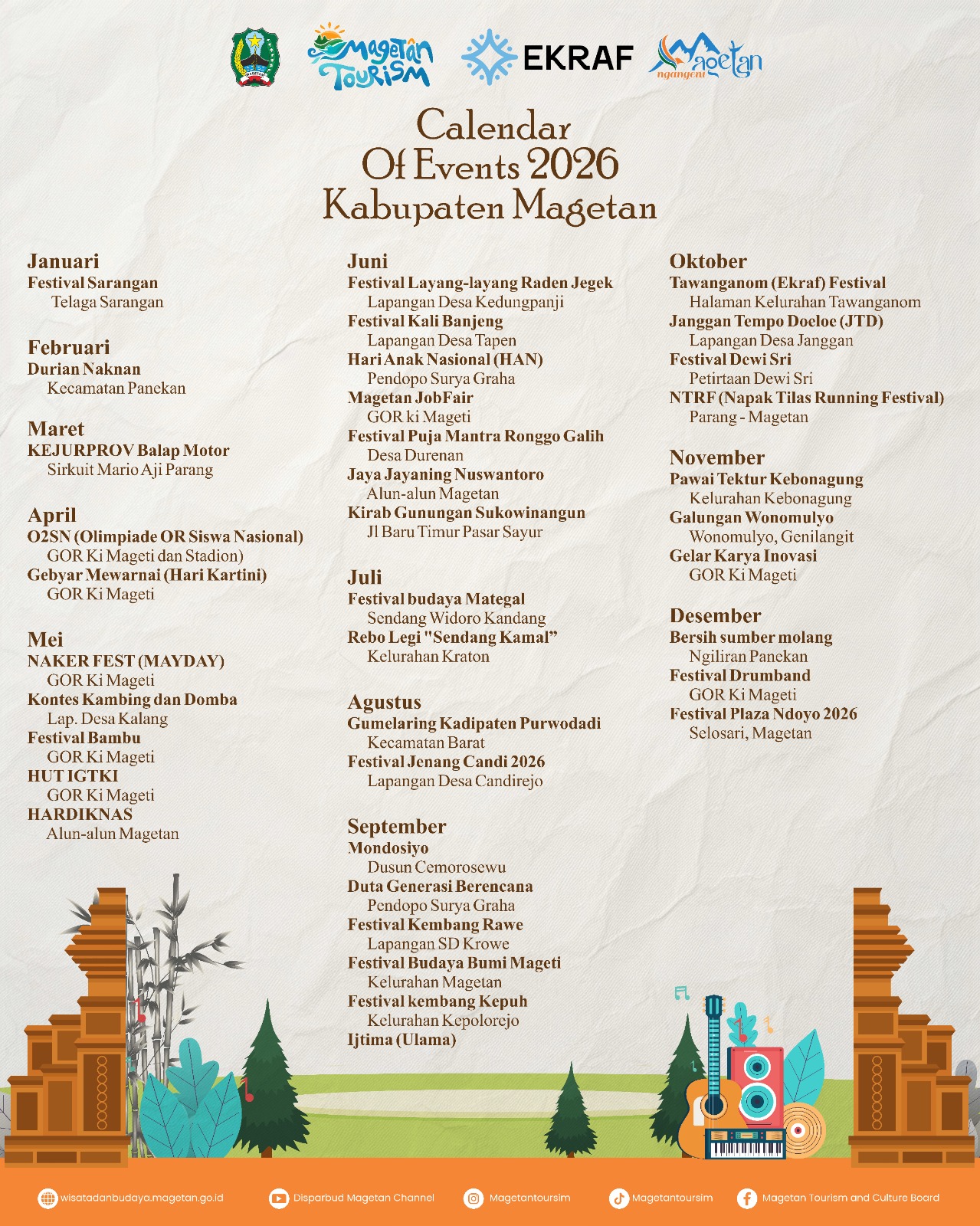 Beritatrends,Magetan – Pemerintah Kabupaten Magetan melalui Dinas Kebudayaan dan Pariwisata (Dibudpar) Kabupaten Magetan launching Calendar of Events 2026 Kabupaten Magetan.