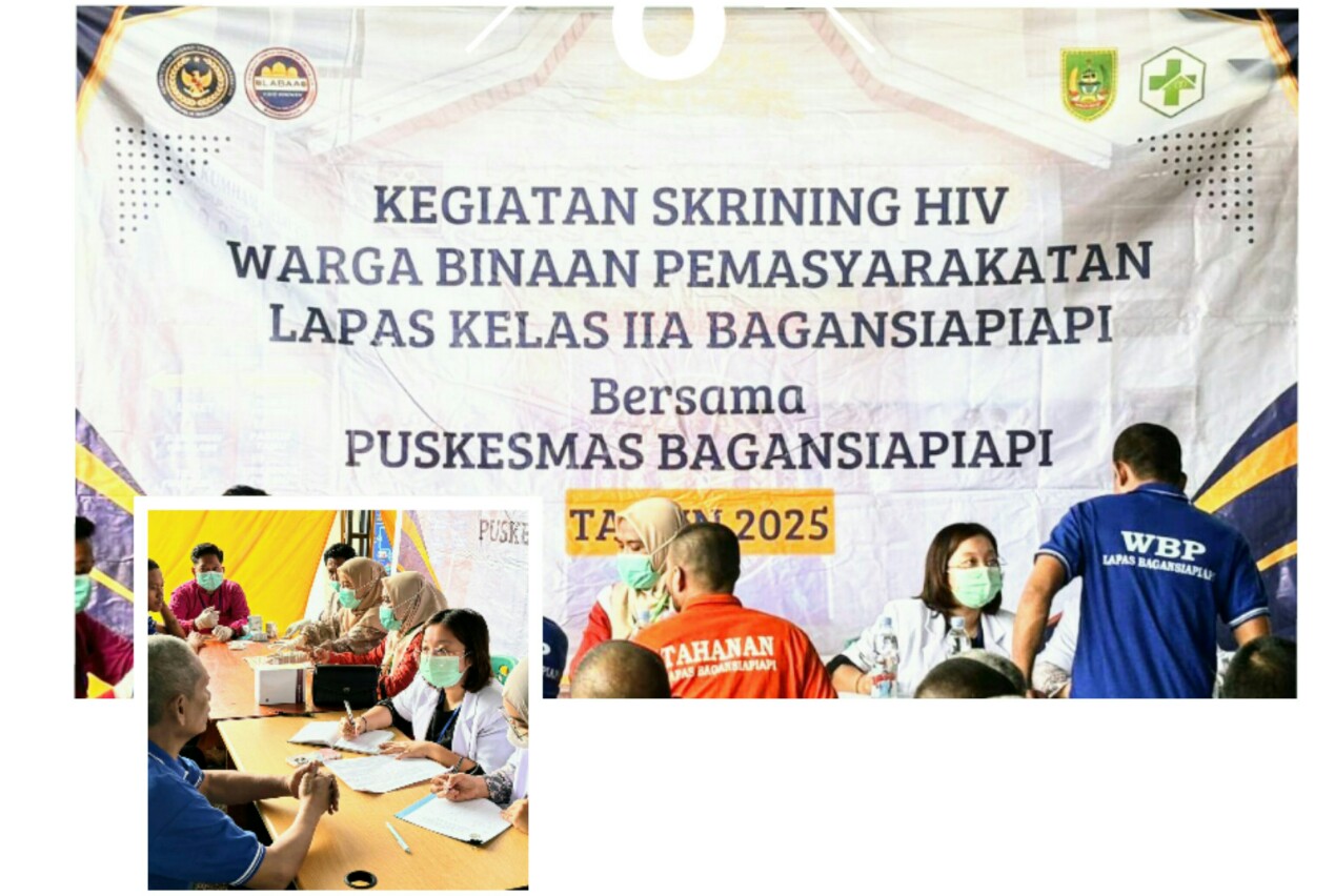 Beritatrends,Bagansiapiapi – Lembaga Pemasyarakatan (Lapas) Kelas IIA Bagansiapiapi melaksanakan kegiatan skrining HIV dan penyakit menular bagi warga binaan baru, Jumat, 28 November 2025. Kegiatan ini merupakan hasil kerja sama antara Lapas Bagansiapiapi dan Puskesmas Bagansiapiapi sebagai upaya menjaga kesehatan serta mencegah penyebaran penyakit di lingkungan pemasyarakatan.
