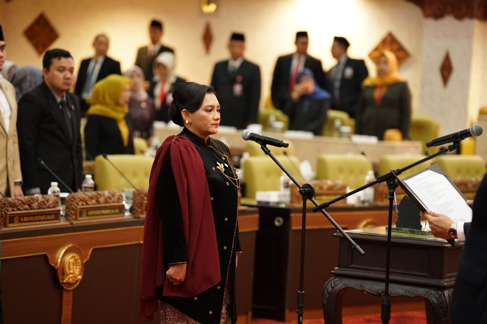 Prosesi pelantikan diawali dengan pembacaan Surat Keputusan Menteri Dalam Negeri, dilanjutkan pengambilan sumpah/janji jabatan, penandatanganan berita acara, serta penyematan PIN DPRD.