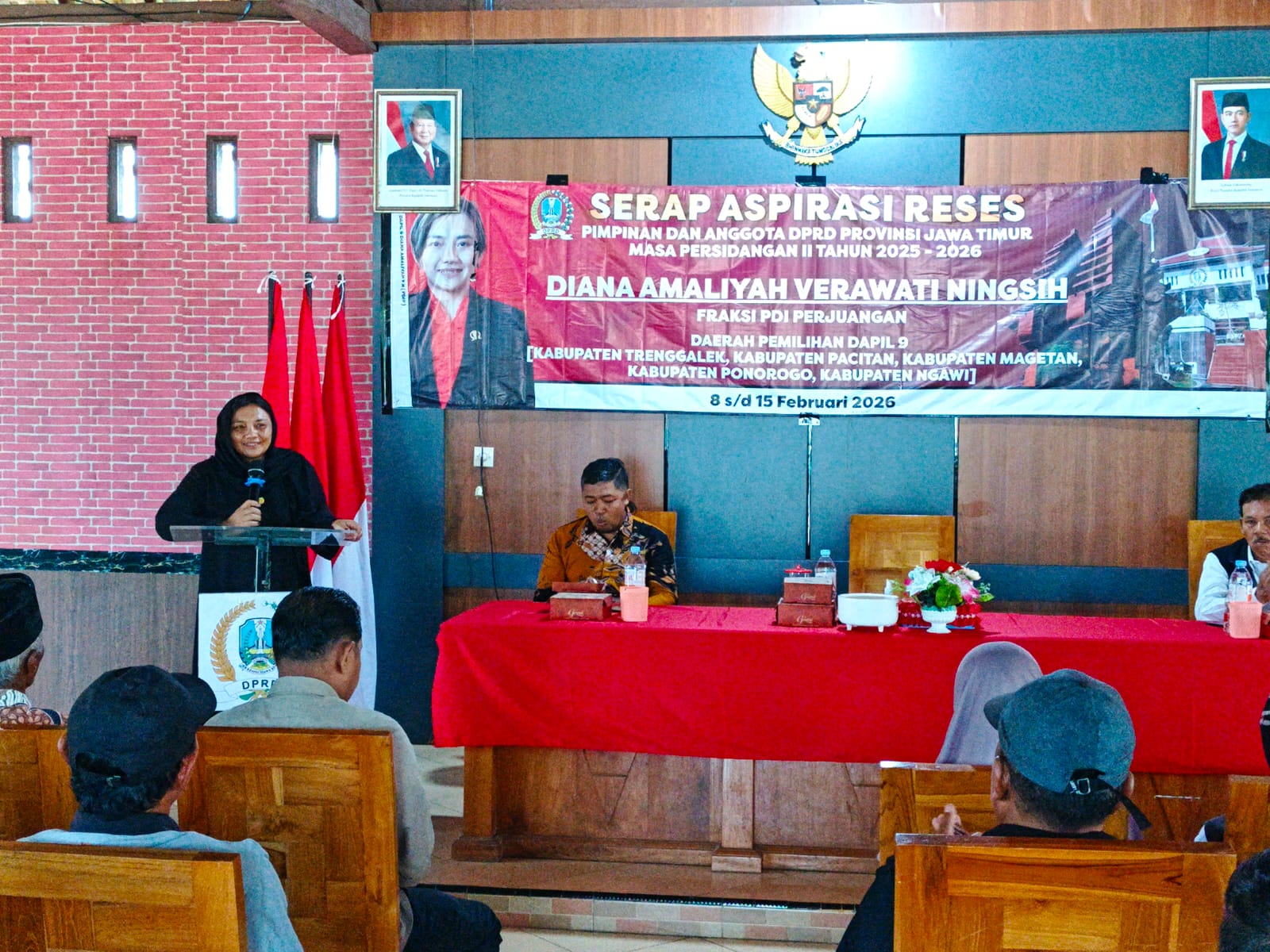 Beritatrends,Magetan – Anggota DPRD Jawa Timur Fraksi PDI Perjuangan, Diana Amaliyah Verawati Ningsih atau akrab disapa Diana Sasa, menggelar reses perdananya di Desa Turi, Kecamatan Panekan, Kabupaten Magetan, Rabu (11/2/2026). Desa tersebut disebut sebagai salah satu basis suara terbesarnya di Magetan pada Pemilu lalu.