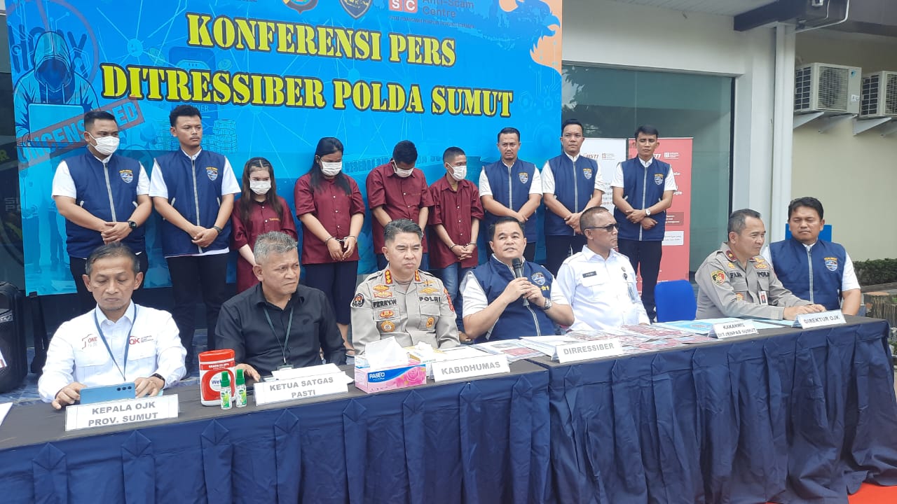 Direktur Reserse Siber Polda Sumut, Kombes Pol Doni Satrya Sembiring,SIK,SH,MSi saat membuka acara konfrensi press menjelaskan bahwa pihaknya sangat berterimakasih kepada Bapak Rizal Rahmadani (Deputi komisioner pengawasan prilaku pelaku usaha jasa keuangan dan perlindungan konsumen OJK RI) Sekaligus ketua Satgas Pasti, Bapak Khoirul Muttaqien Kepala OJK Provinsi Sumatera Utara dan Bapak Drs Yudi Suseno,Bc,Ip.,Spd,M.Si (Kepala Kantor Wilayah Ditjenpas Sumut) yang begitu besar jasanya membantu mengungkap pelaku Scam.