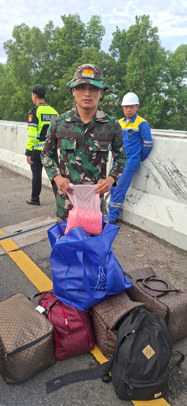 BeritaTrends, Lampung – Kecelakaan tunggal sebuah mobil SUV di Jalan Tol Trans Sumatra KM 136 jalur B, Kamis (20/11/2025), mengungkap fakta mengejutkan: puluhan ribu pil ekstasi siap edar. Dua prajurit Korem 043/Garuda Hitam (Gatam) menjadi pahlawan dalam insiden ini.