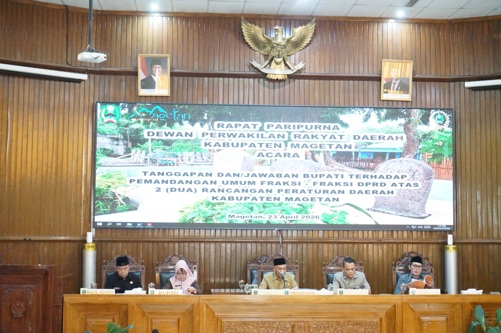 Beritatrends,Magetan – Pembahasan dua rancangan peraturan daerah (raperda) strategis di Kabupaten Magetan terus bergulir. Dalam rapat paripurna DPRD Kabupaten Magetan, Kamis (23/4/2026), Bupati Magetan Hj. Nanik Sumantri, M.Pd menyampaikan jawaban atas pemandangan umum fraksi-fraksi DPRD terhadap dua raperda yang tengah dibahas.