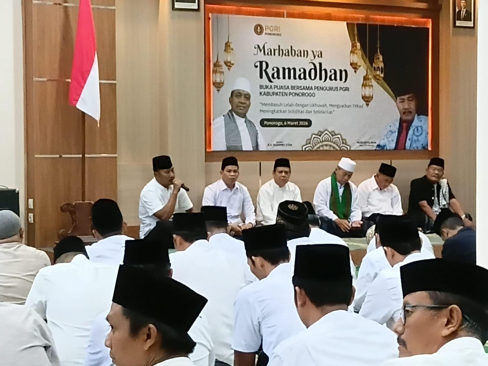 Ketua PGRI Kabupaten Ponorogo, Ruskamto, M.Pd, dalam sambutannya menyampaikan bahwa kegiatan buka puasa bersama ini merupakan agenda rutin yang digelar setiap tahun oleh pengurus PGRI Kabupaten Ponorogo. Kegiatan tersebut menjadi sarana untuk mempererat silaturahmi sekaligus meningkatkan soliditas dan solidaritas seluruh jajaran pengurus.