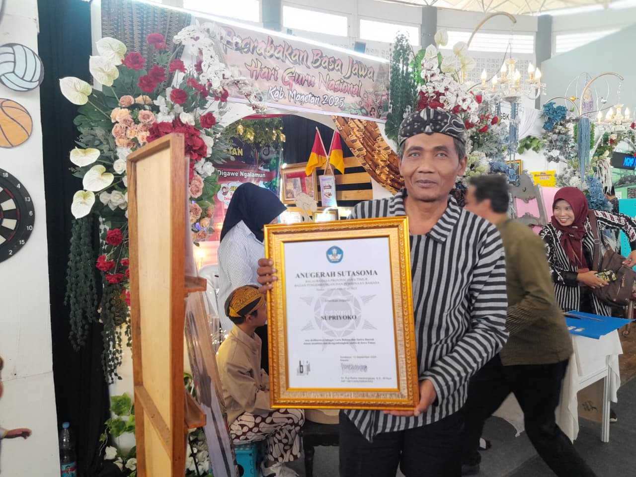 Beritatrends,Magetan – Supriyoko, S. PD atau biasa dipanggil Priyoko merupakan salah satu guru bahasa Jawa berprestasi yang meraih Anugrah Sutasoma dari Balai Bahasa Provinsi Jawa Timur.