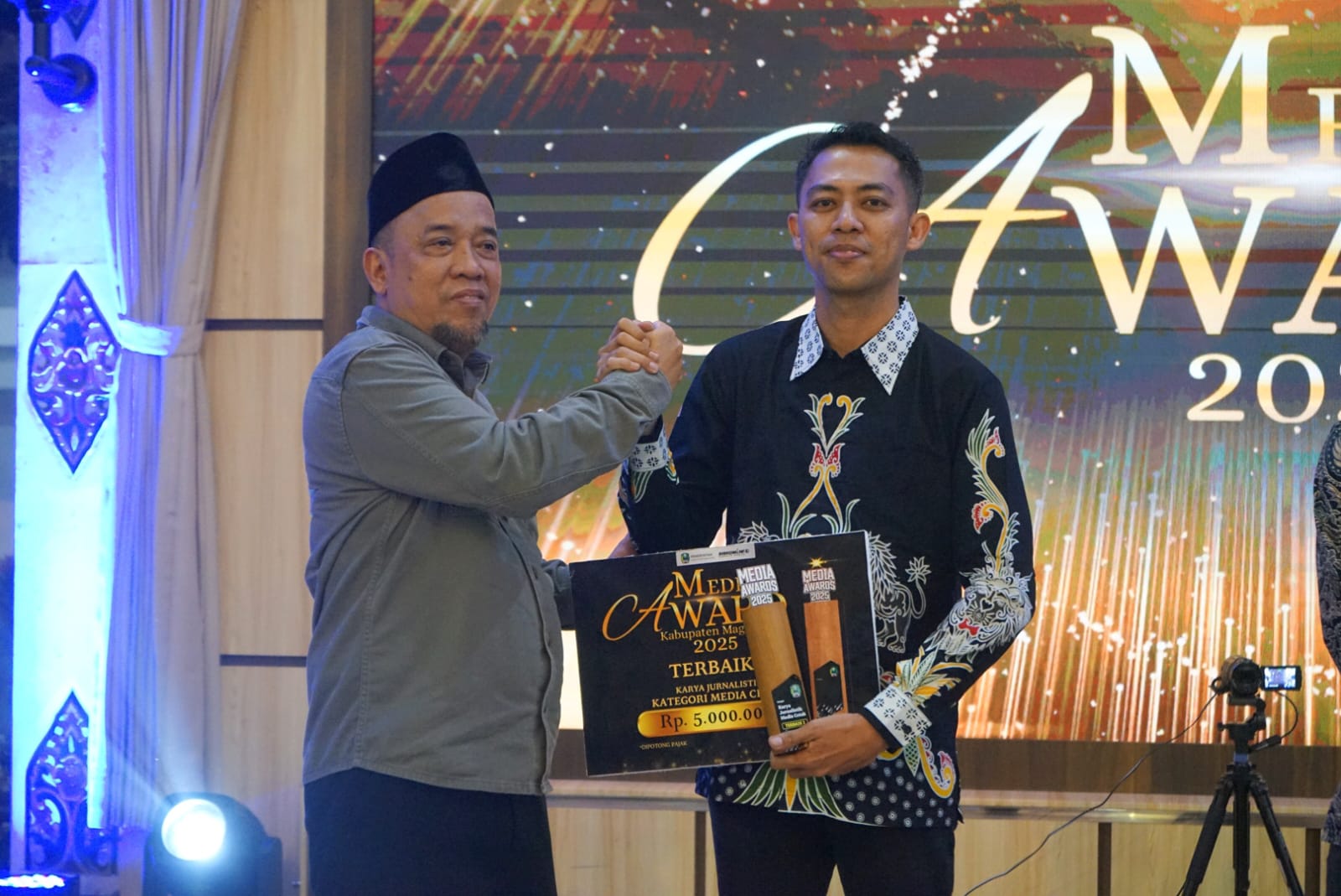 Beritatrends,Magetan – Jurnalis Pojok Kiri, Galih Wijaya, meraih juara pertama kategori Media Cetak dalam ajang Media Awards Magetan 2025. Penghargaan tersebut diumumkan pada Malam Penganugerahan Media Awards 2025 yang digelar Dinas Komunikasi dan Informatika Kabupaten Magetan, Jumat (19/12/2025) malam, di Pendopo Surya Graha.