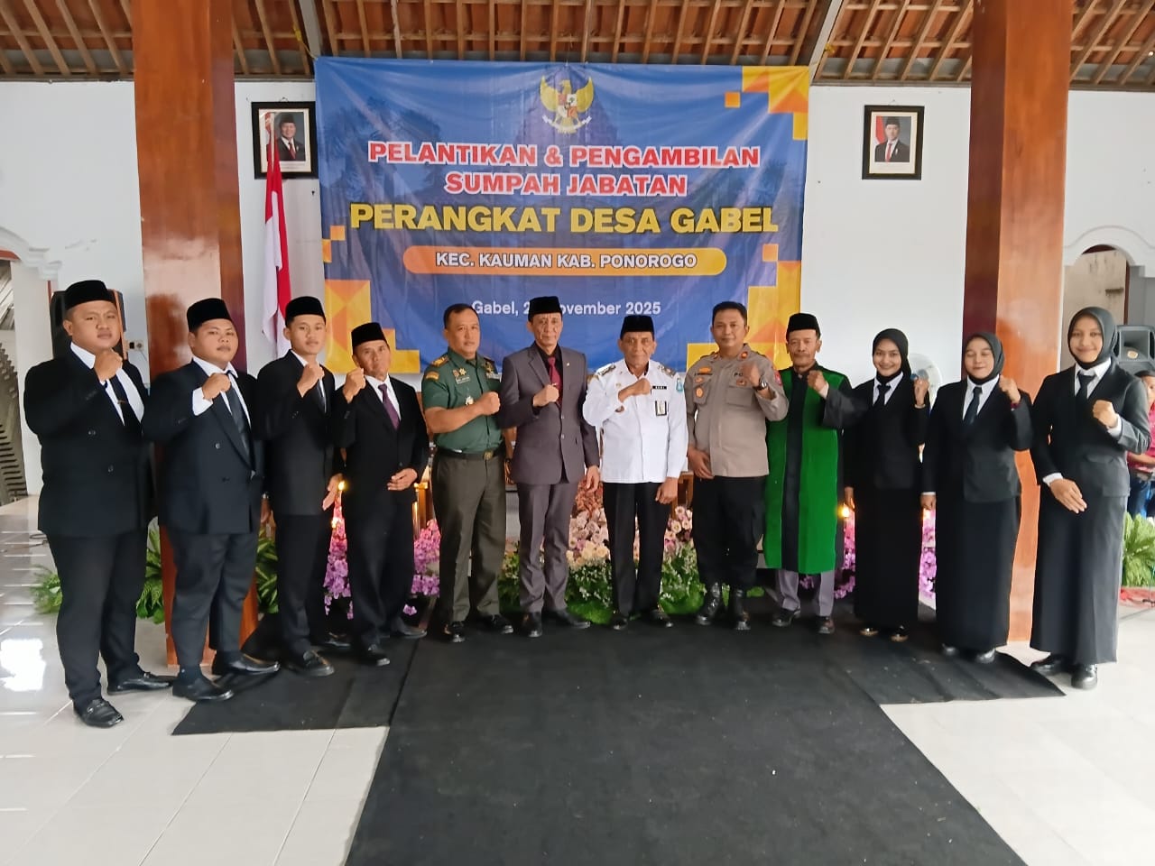 Beritatrends,Ponorogo – Enam orang perangkat Desa Gabel Kecamatan Kauman Kabupaten Ponorogo yang lolos seleksi secara resmi dilantik sekaligus diambil sumpah jabatannya di pendopo balai desa setempat, Rabu (26/11/2025).