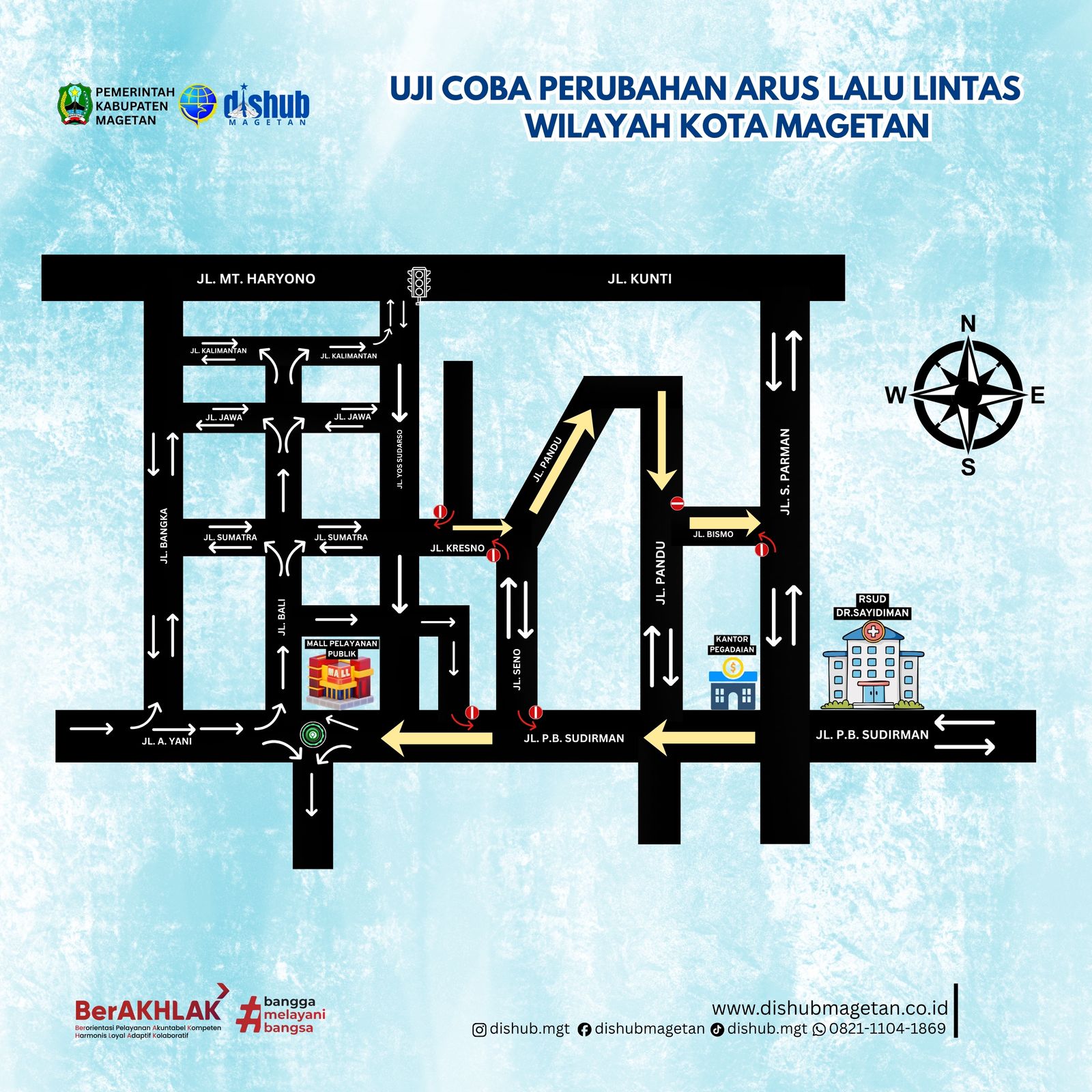 Dishub berharap, melalui uji coba ini, kepadatan lalu lintas di pusat kota Magetan dapat terurai, sekaligus meningkatkan kelancaran mobilitas masyarakat.