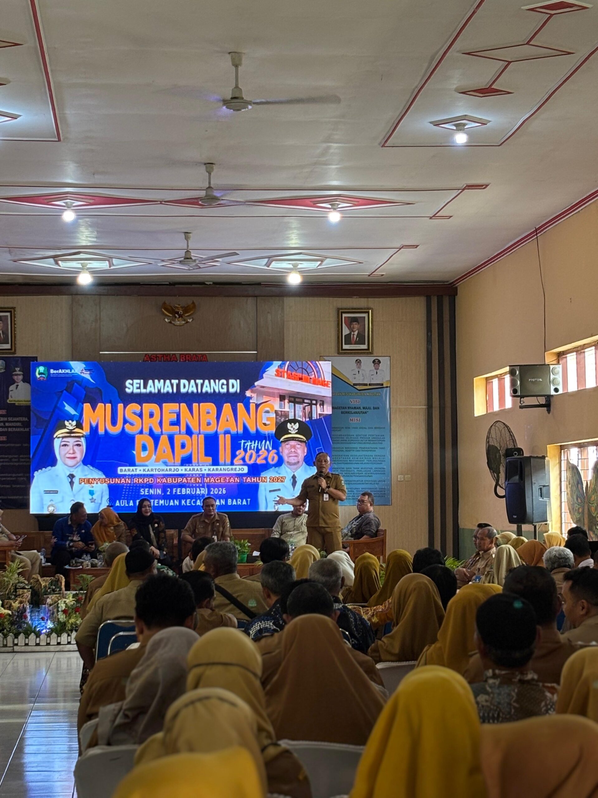 Beritatrends,Magetan – Penyusunan Rencana Kerja Pemerintah Daerah (RKPD) Kabupaten Magetan Tahun Anggaran 2027 terus dimatangkan. Senin (2/2/2026), giliran wilayah Daerah Pemilihan (Dapil) II yang meliputi Kecamatan Barat, Kartoharjo, Karas, dan Karangrejo menggelar Musyawarah Perencanaan Pembangunan (Musrenbang) tingkat kecamatan.