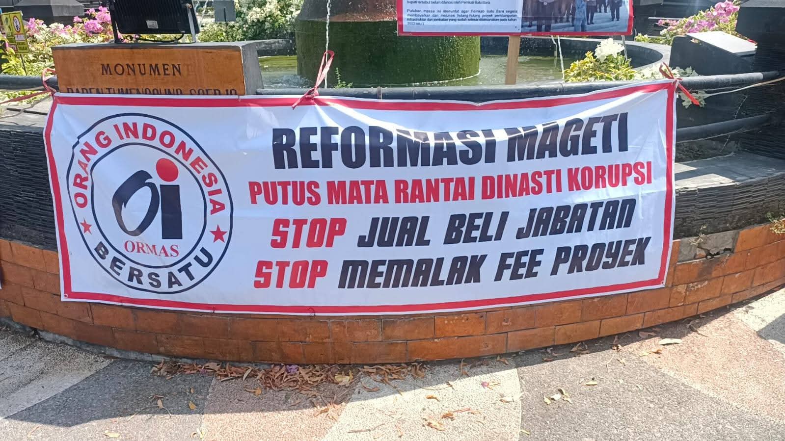 Pernyataan Sikap Ormas Orang Indonesia Bersatu Terhadap Rencana Mutasi/ Rotasi Jabatan di Lingkungan Pemerintahan Kabupaten Magetan Jawa Timur disampaikan dan dibacakan oleh Sutikno selaku Sekretaris Ormas Orang Indonesia (OI) Bersatu.