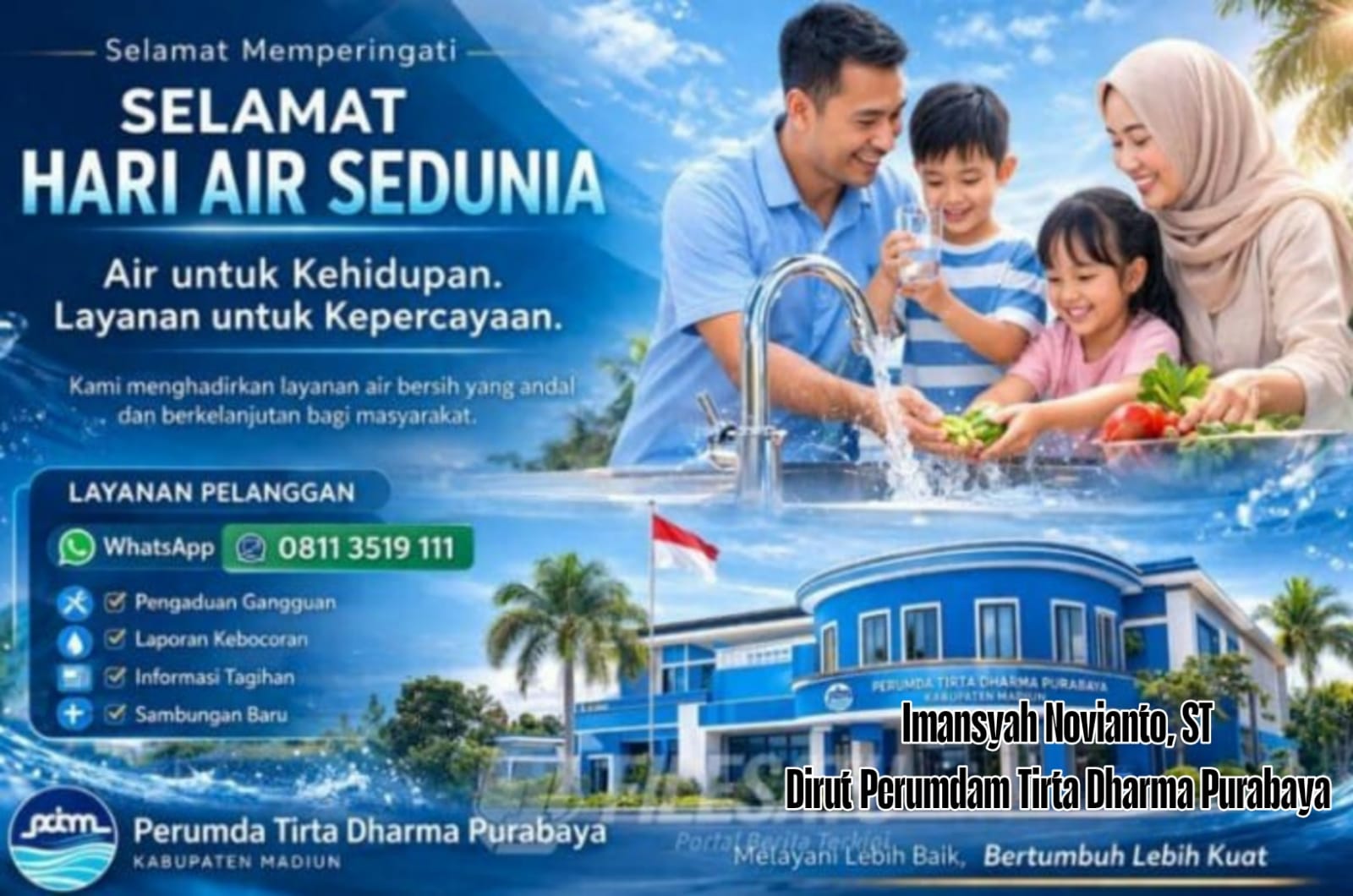 BeritaTrends, Madiun – Dereksi beserta Staf Perumda Tirta Dharma Purbaya Madun Mengucapkan Selamat Hari Air Sedunia