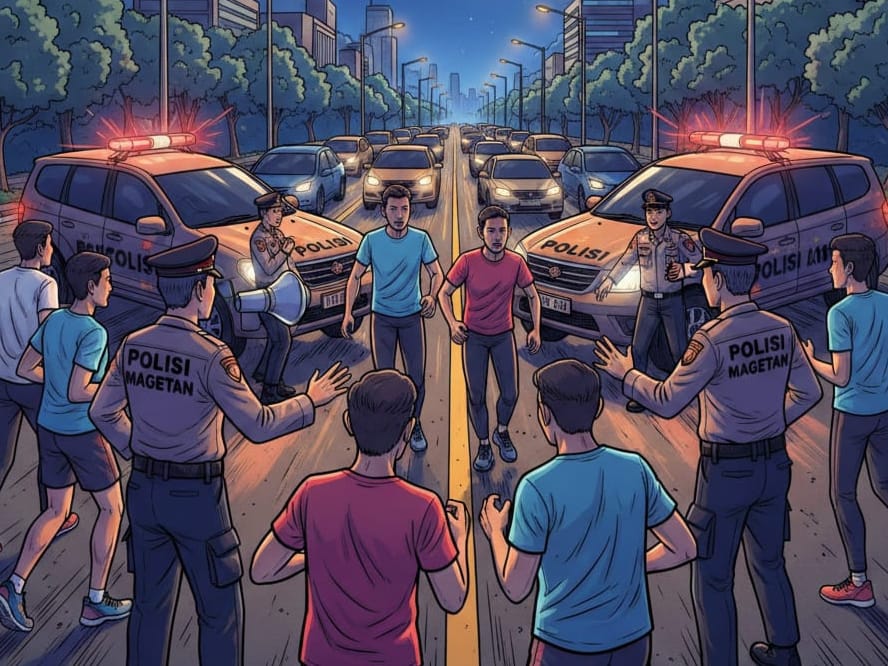 Beritatrends Magetan – Aksi balap orang yang sempat viral di media sosial di Jalan Raya protokol Maospati–Magetan, tepatnya di Desa Sugihwaras, Kecamatan Maospati, dibubarkan aparat kepolisian, Sabtu malam (21/2).
