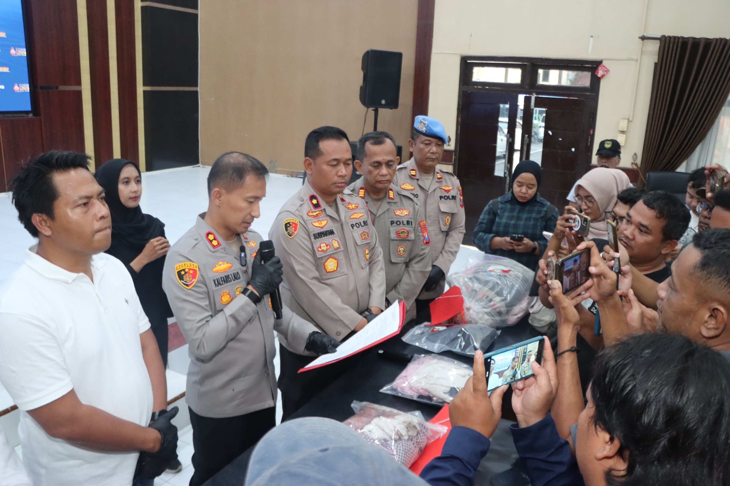 “Tersangka melakukan kekerasan dengan cara mencekik korban menggunakan tangan dan bantal, kemudian menusuknya dengan gunting,” terang Kapolres saat konferensi pers.