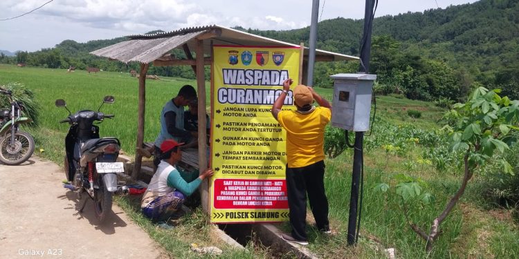 Kegiatan yang dilaksanakan sejak pukul 10.00 WIB tersebut menyasar sejumlah titik yang dinilai rawan terjadinya tindak kejahatan curanmor. Banner dipasang di antaranya di pertigaan Dukuh Tengger Desa Slahung, areal persawahan perbatasan Desa Broto tepatnya di Dukuh Klampis dengan Dukuh Dawang Desa Slahung, serta areal persawahan Dukuh Bandungan Desa Slahung.