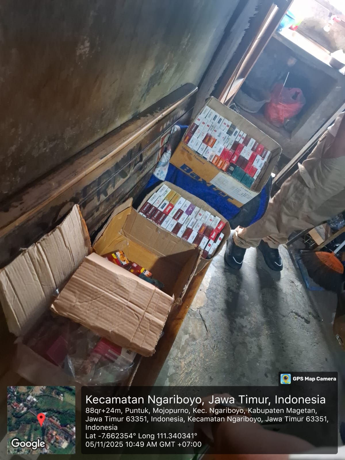 Gunendar Kabid Penegakan Perda Satpol PP Magetan Mengatakan “Di Kecamatan Ngariboyo, petugas menemukan sekitar 200 bungkus rokok ilegal tanpa dilekati pita cukai. Setelah dilakukan proses administrasi oleh personel Bea Cukai Madiun, seluruh barang bukti langsung dibawa ke kantor Bea Cukai untuk proses lebih lanjut”.