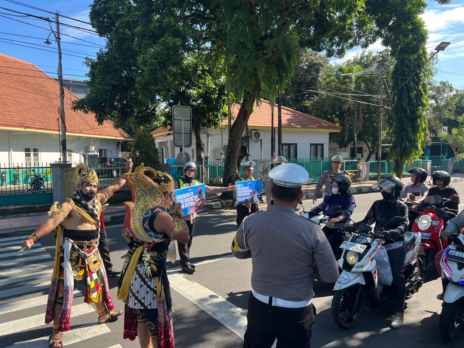 Gatotkaca dan Werkudara diterjunkan untuk mengingatkan pengendara agar tertib lalu lintas.