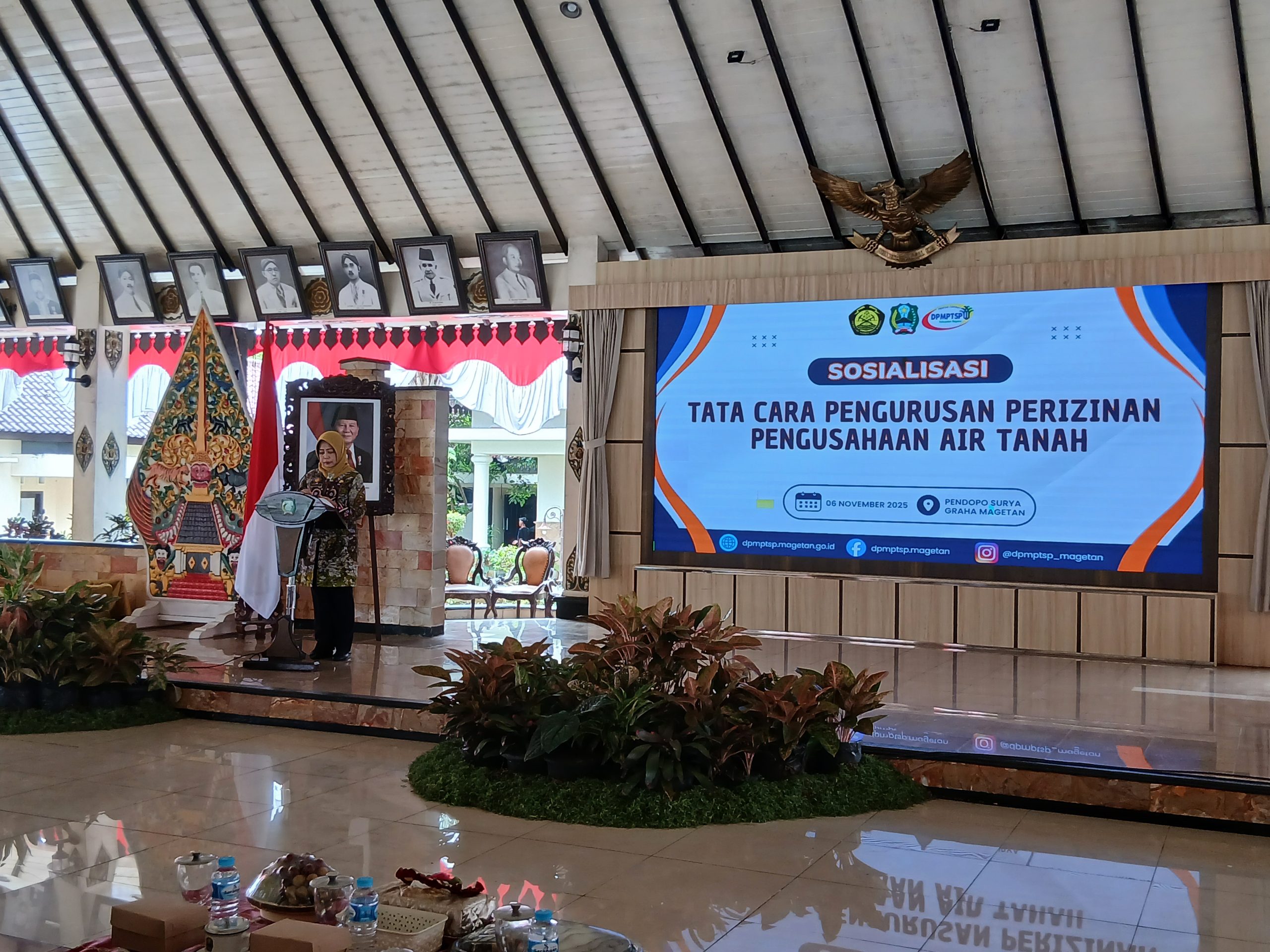 Beritatrends, Magetan – Dinas Penanaman Modal dan Pelayanan Terpadu Satu Pintu (DPMPTSP) Magetan mengadakan sosialisasi mengenai tata cara pengurusan perizinan air tanah atau Surat Izin Pengusahaan Air Tanah (SIPA). Acara ini berlangsung di Pendopo Surya Graha Kabupaten Magetan pada hari Kamis, 6 November 2025.