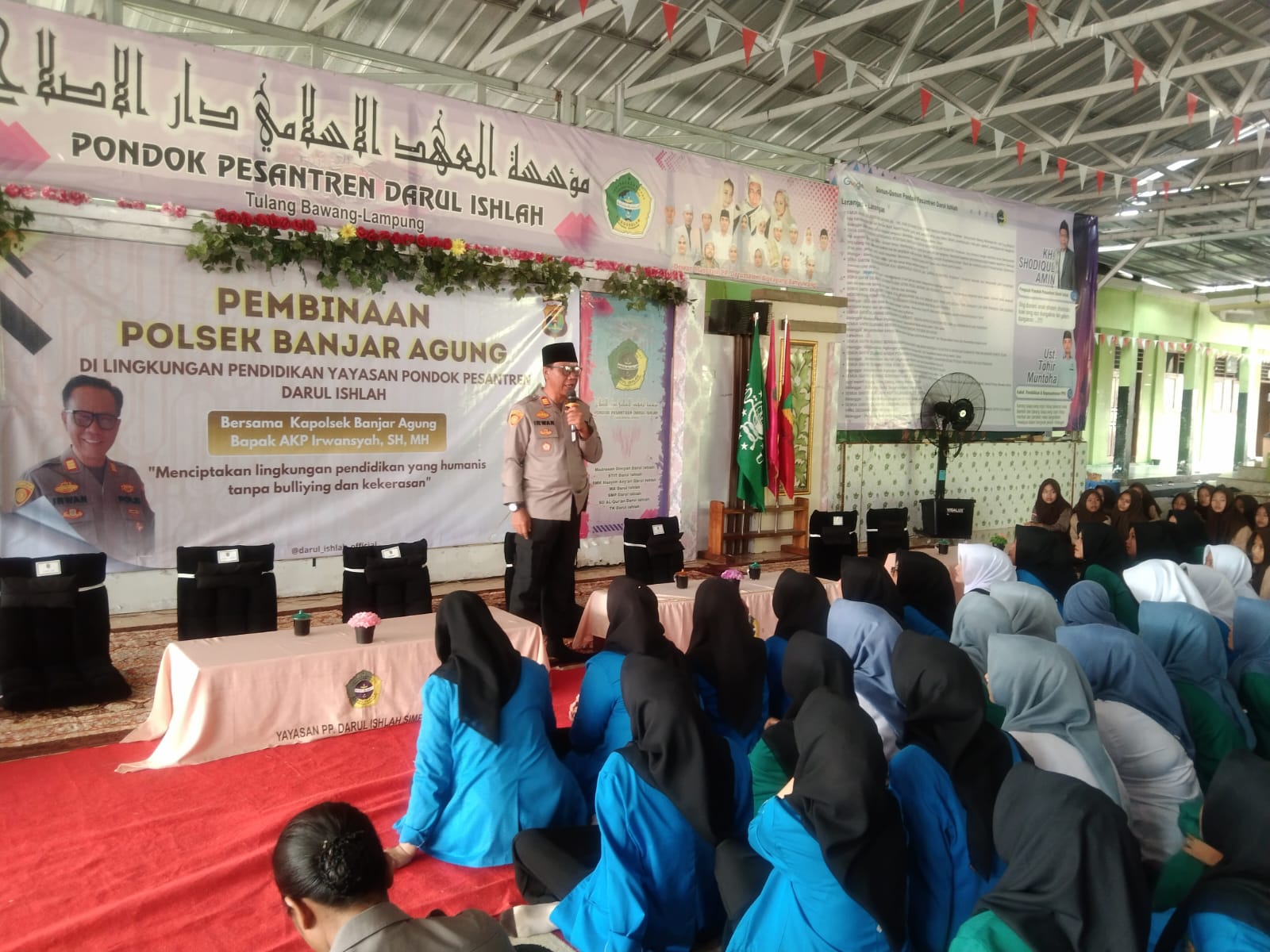 Beritatrends,Tulang Bawang – Sabtu, 22 November 2025 Dalam upaya memperkuat budaya pendidikan yang aman, humanis, dan bebas kekerasan, Polsek Banjar Agung turun langsung memberikan pembinaan kepada para santri di Yayasan Pondok Pesantren Darul Ishlah, Kampung Purwajaya, Kecamatan Banjar Margo, Kabupaten Tulang Bawang.