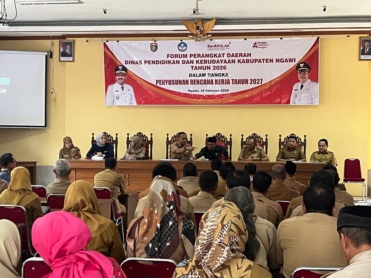 Beritatrends, Ngawi-Dinas Pendidikan dan Kebudayaan Kabupaten Ngawi, Jawa Timur menggelar kegiatan Forum Perangkat Daerah 2026 untuk menyelaraskan program kerja dengan kebutuhan masyarakat sebagai bahan penyusunan rencana kerja tahun 2027, Selasa (24/2/2026).