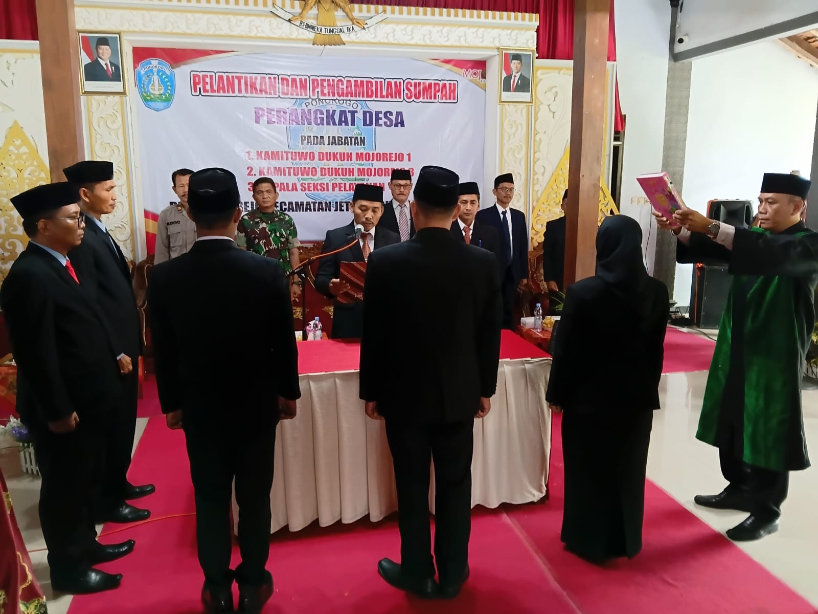 Dalam kesempatan tersebut, tiga orang perangkat baru secara resmi dilantik dan diambil sumpahnya yakni Revaldi Eko Bagus Pernama sebagai Kamituwo Dukuh Mojorejo 1, Muhamad Kuzaini sebagai Kamituwo Dukuh Mojorejo 3, dan Kiki Aulida Ayu Fitriani sebagai Kepala Seksi Pelayanan.